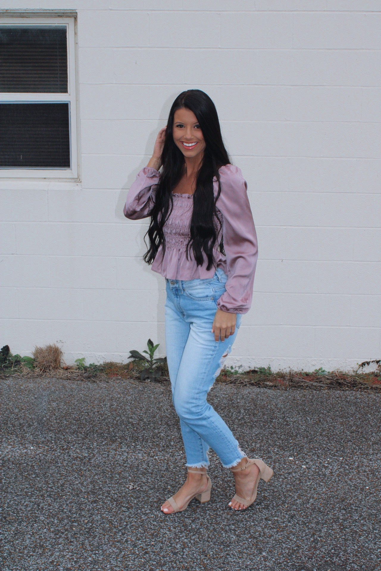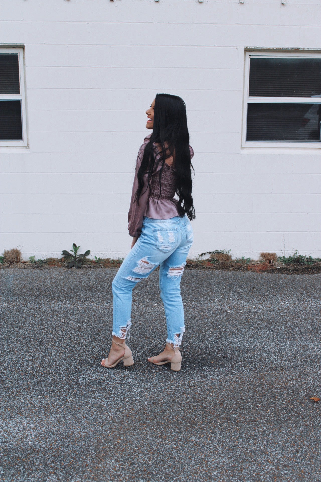 - Our new favorite jeans for obvious reasons! These beauties feature a high rise fit and distressed detailing on the back! Pair them with your favorite sweater and booties for the trendiest look!
