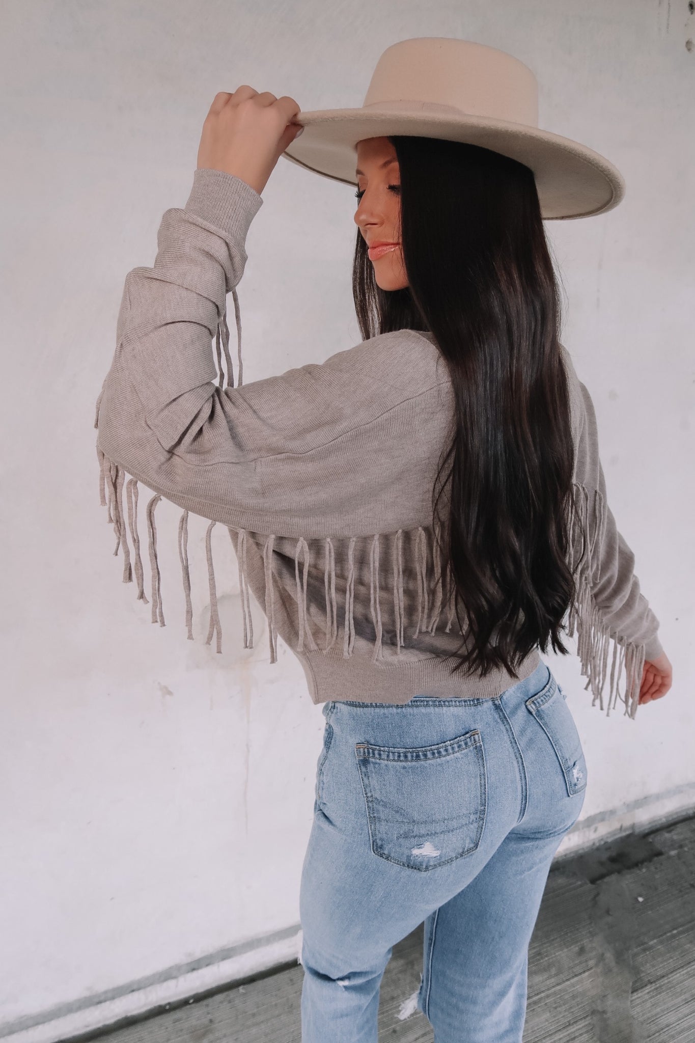 Switch up your usual basic cardigan for this fun little number! This solid knit cardigan features a v-neckline, tassel trim sleeves, button front closure, and a ribbed neckline, cuffs, and hem. You can style it as a top or layer it over any piece!