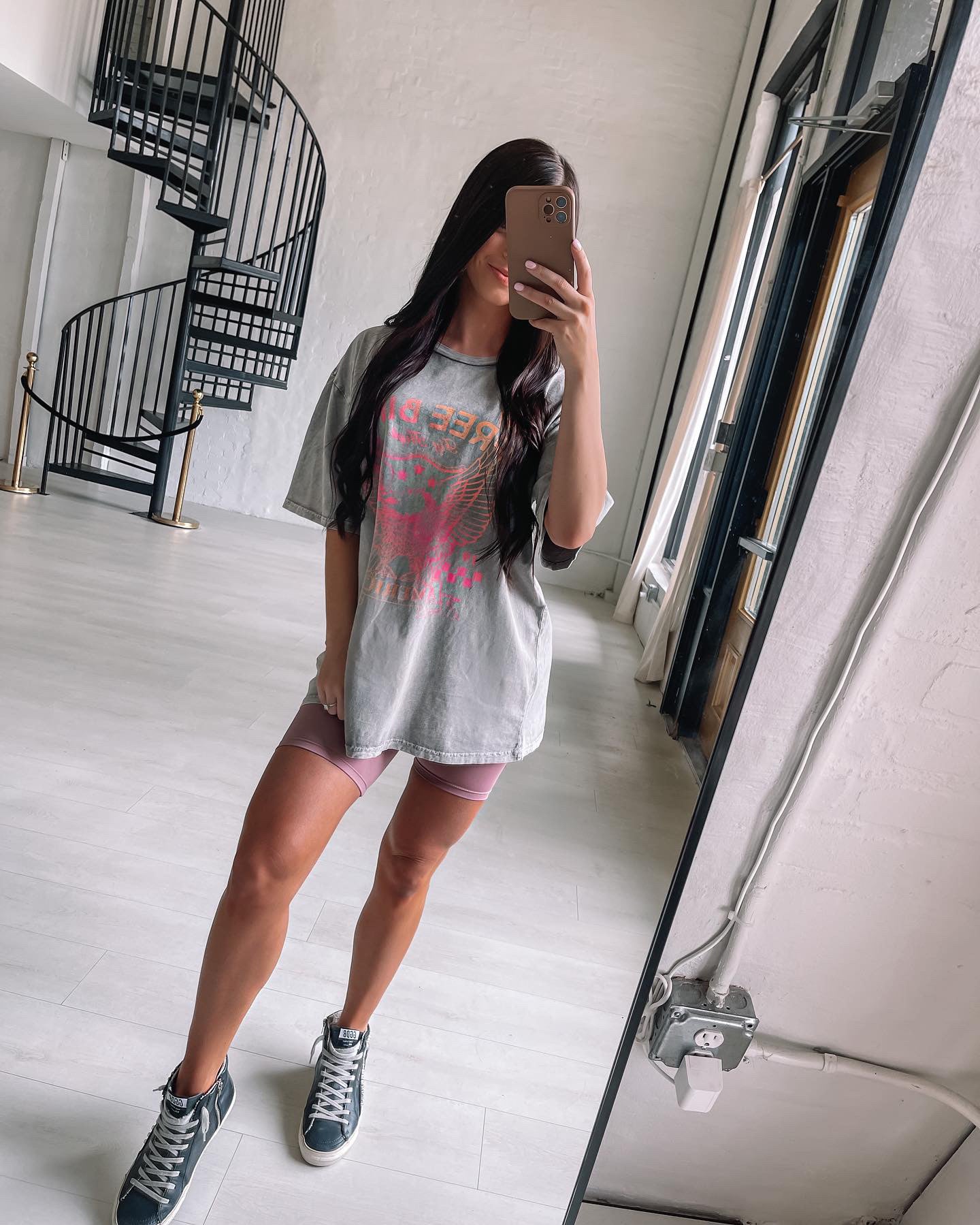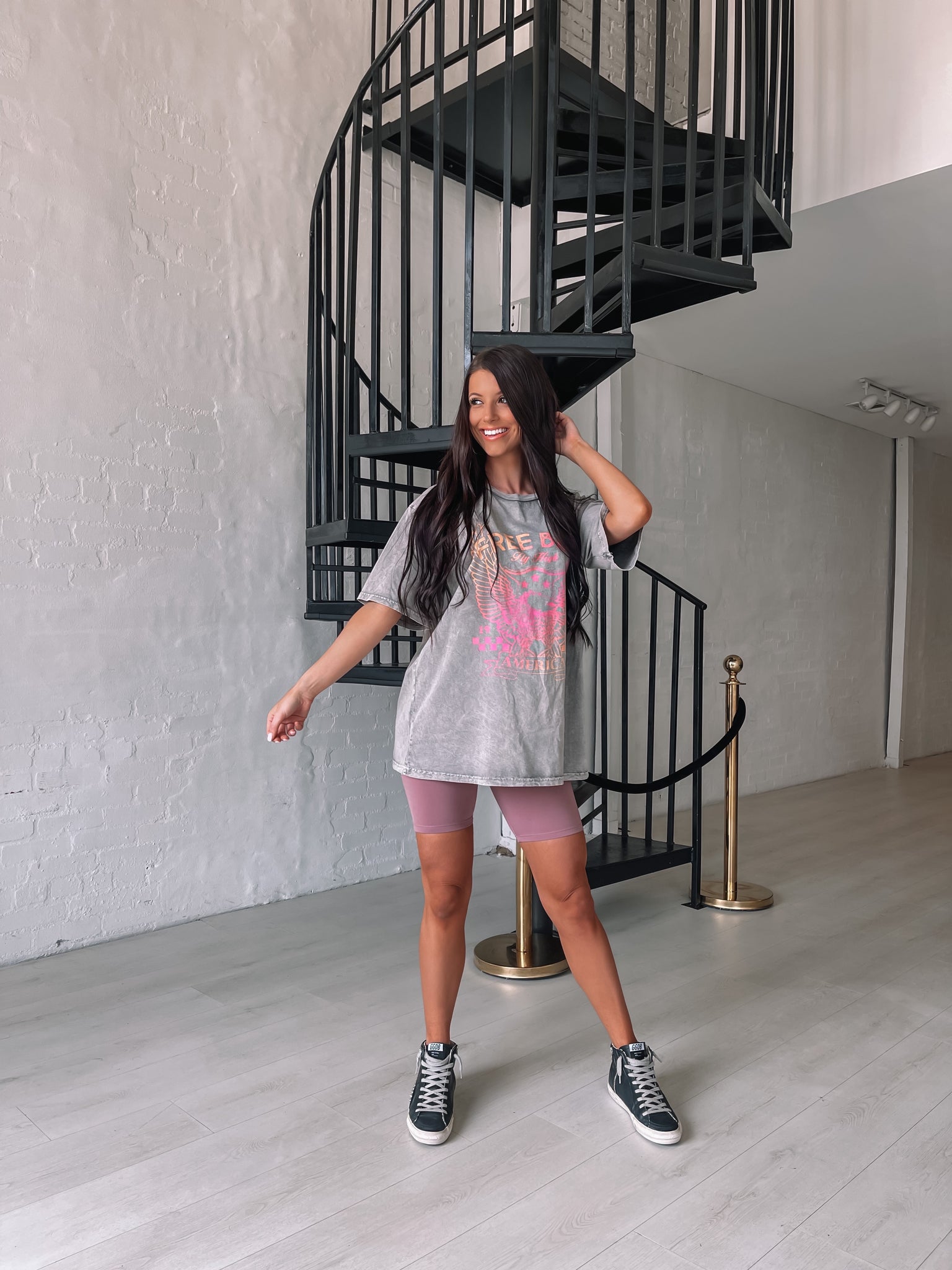 Because you can never have too many oversized tees! This graphic tee features "Free Bird America" in pink and orange!